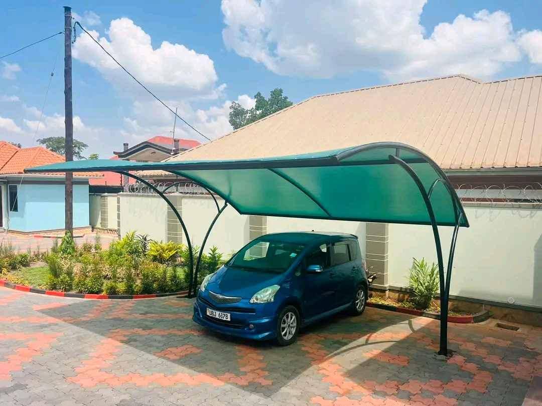 Car shade for two cars made in carport net water proof material with all it's stand frame pipes