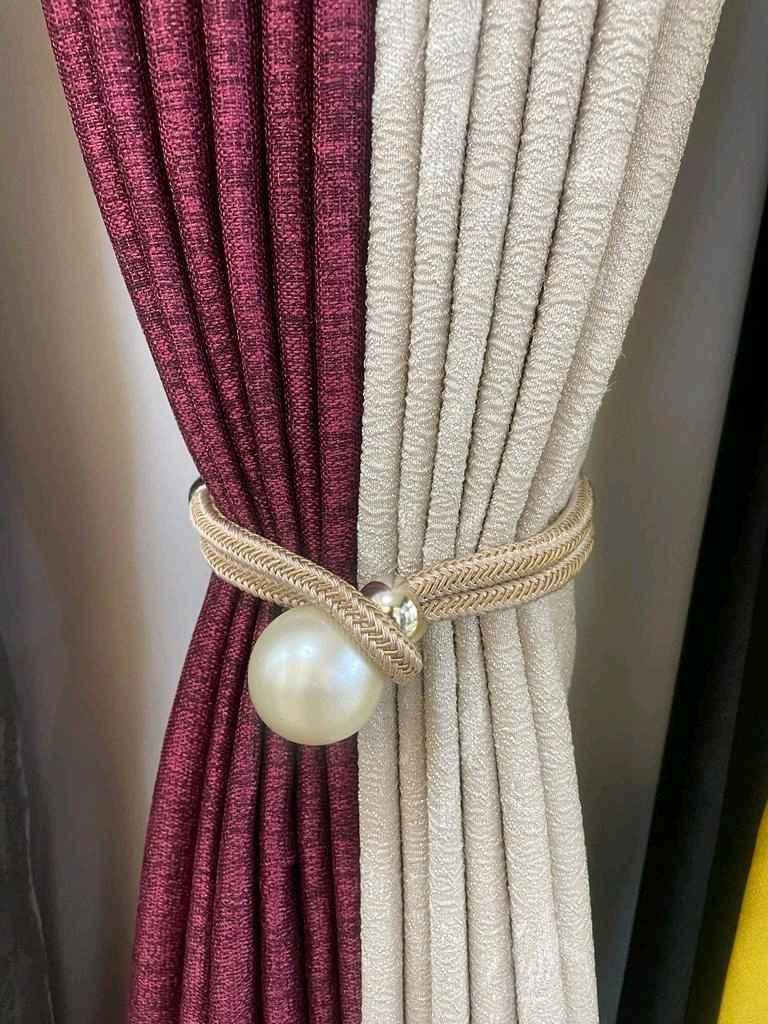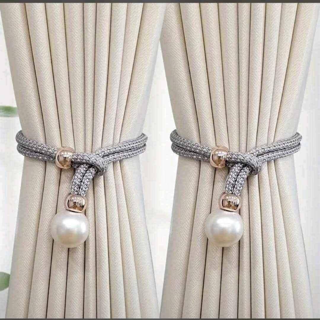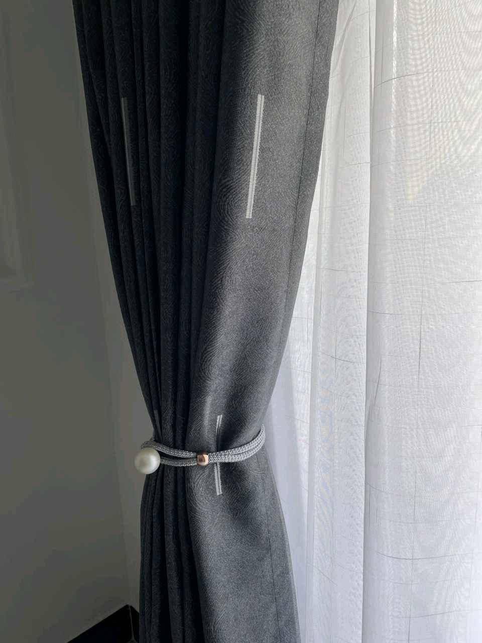 Curtain Tiebacks – Elegant tiebacks in gray, gold, and cream, designed to add a decorative touch while keeping curtains neatly arranged.