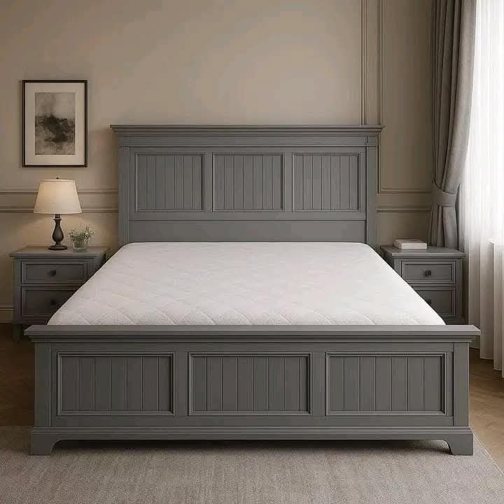 Elegant 5 by 6 Grey Wooden Bed Frame with Nightstands