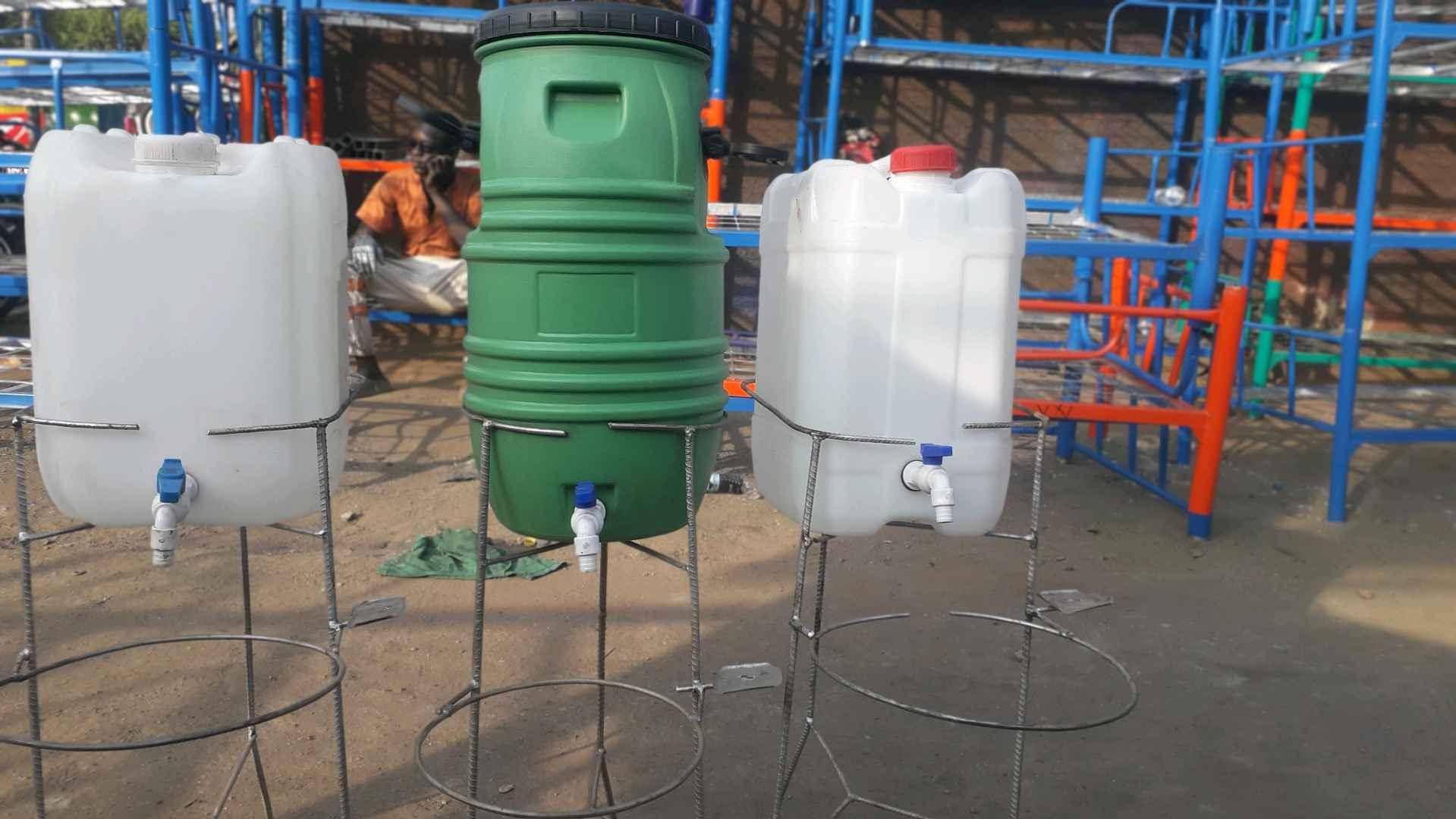 White and green hand washers