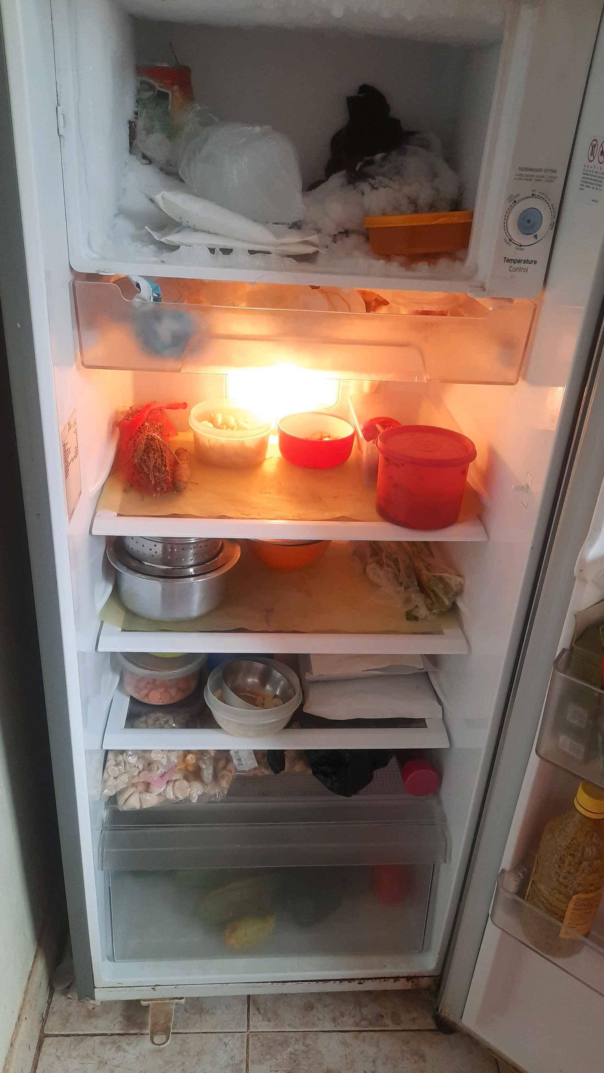 Lg brand small fridge.. 3yrs old....working brilliantly....only the freezer door is broken but freezes nicely